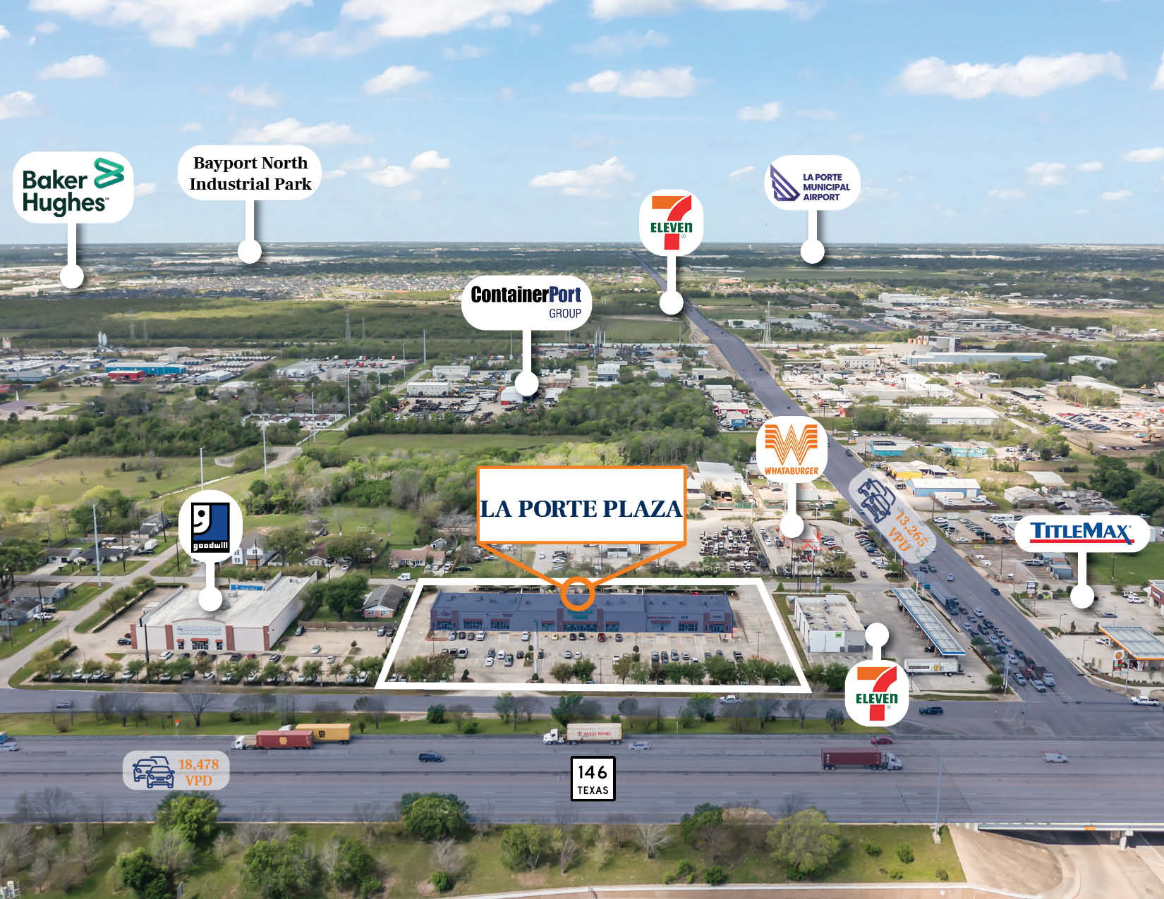• Located along TX-146 in La Porte, a high-traffic retail corridor linking to SH 99